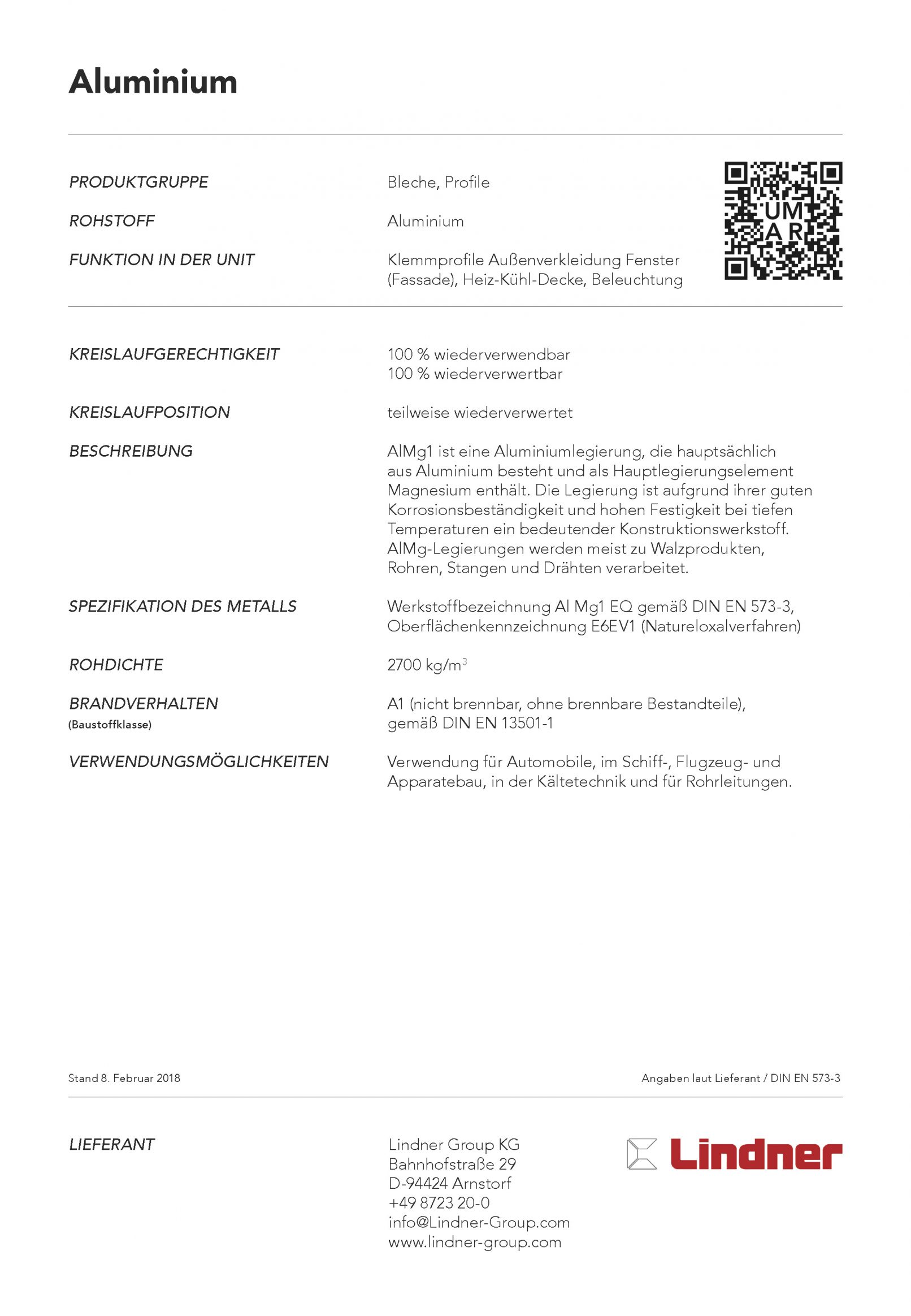 AlMg1 is an aluminum alloy consisting mainly of aluminum, containing magnesium as the main alloying element. The alloy is an important engineering material because of its good corrosion resistance and high strength at low temperatures. AlMg alloys are mostly processed into rolled products, tubes, rods and wires.