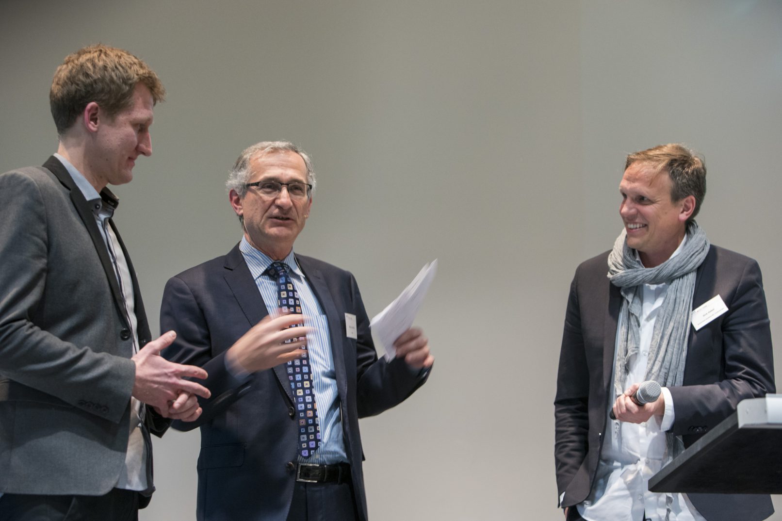 Felix Heisel, Head of Research at the Chair of Sustainable Construction at KIT Karlsruhe, Prof. Dr. Gian-Luca Bona, CEO Empa, Prof. Dirk E. Hebel, Director of the Chair of Sustainable Construction at KIT Karlsruhe (Photo Empa)