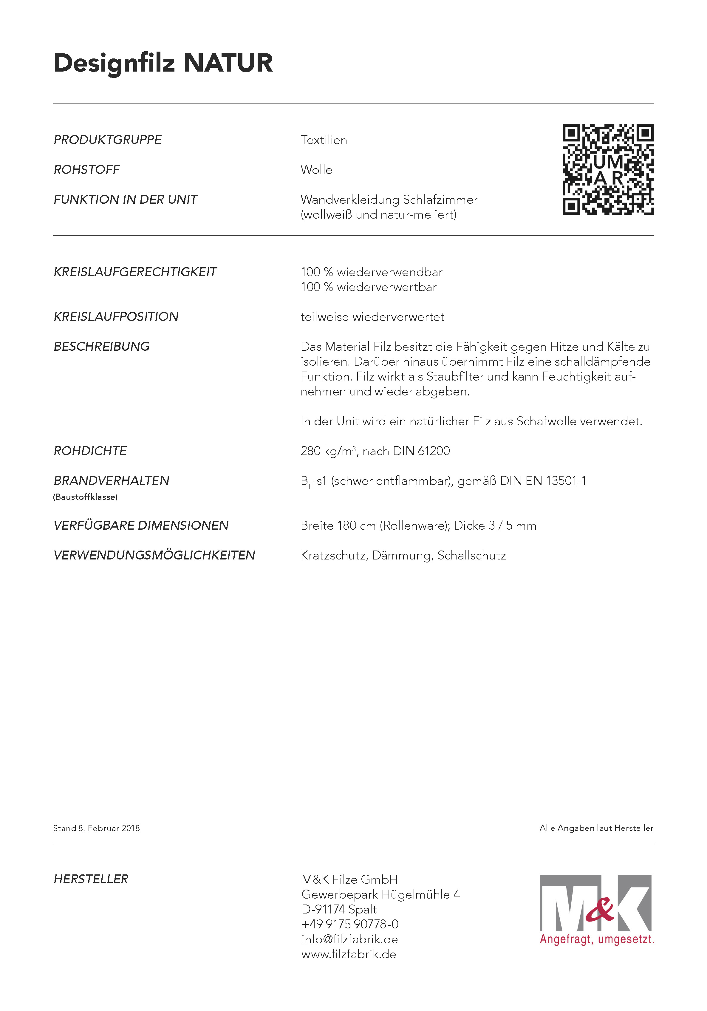 The material felt has the ability to insulate from heat and cols. In addition, felt offers sound-absorbing propoerties. Felt acts as a dust filter and can absorb and release moisture.